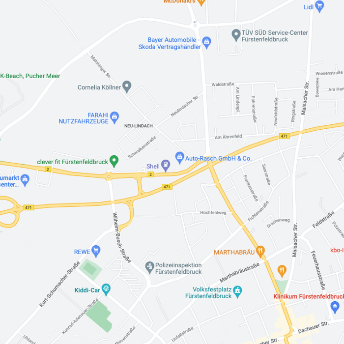 Nördlich der Altstadt der Lankreishauptstadt Fürstenfeldbruck liegt die Shell direkt an der Bundesstraße 471.
